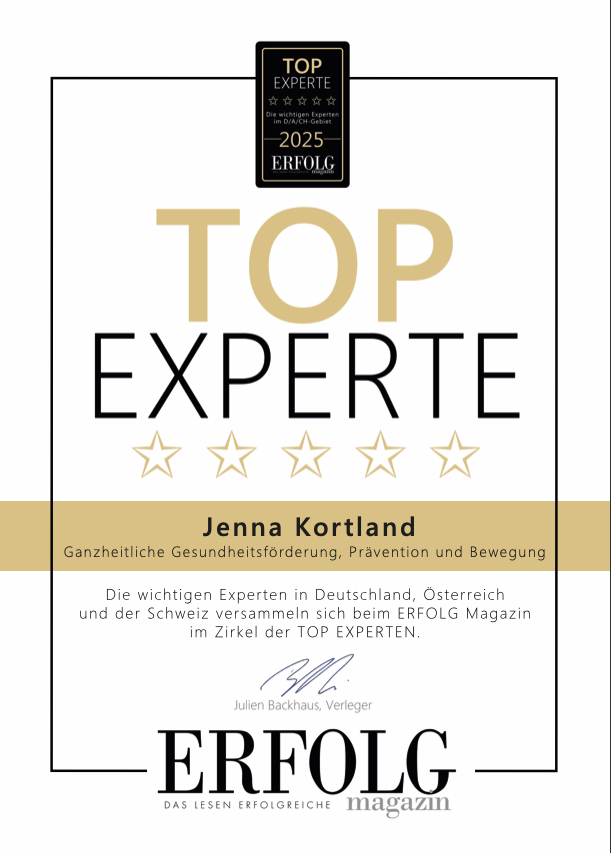 Ich bin Jenna Kortland - Gesundheitsexpertin, Bewegungstrainerin und Speakerin.